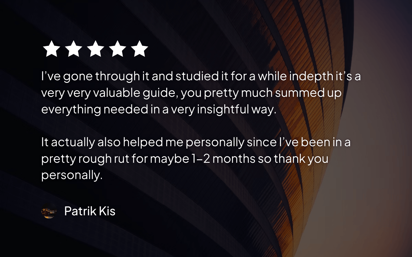 - ... AND 4-years of self-development on myself focused on entrepreneurs Alex Hormozi, Iman Gadzhi, Arlin Moore, Ali Abdaal, Dan Koe & their respective protocols that made them successes.